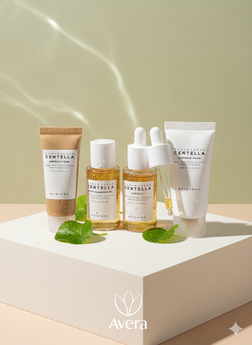 This travel kit consists of- Ampoule Foam 20ml, Toning Toner 30ml, Ampoule 30ml, Soothing Cream 30ml, Light Cleansing Oil 30ml. SKIN1004 Madagascar Centella Travel Kit, Basic Skincare Box, Soothing Calming Compact Size. Ampoule Foam: A deep cleanser helps remove pore waste and balances skin. Toning Toner: A multi-tasking toner replenishes hydration after cleansing while removing dead skin cells gently. Ampoule: Contains 100% Centella Asiatica Extract to help create an intact skin barrier. Soothing Cream: A moisturiser formulated with EWG-certified Green Grade ingredients only. Light Cleansing Oil - A light-weight cleanser removes all makeup and sunscreen completely. How to use- Adjust skin texture after cleansing. Followed by an ampoule and cream